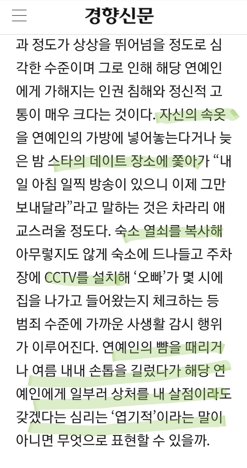 사생분들은 부디 연예인 스토킹에서 벗어나서 성실한 삶을 살길 바랍니다
