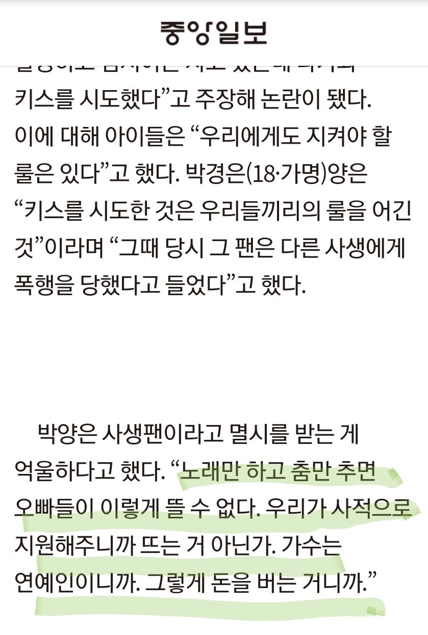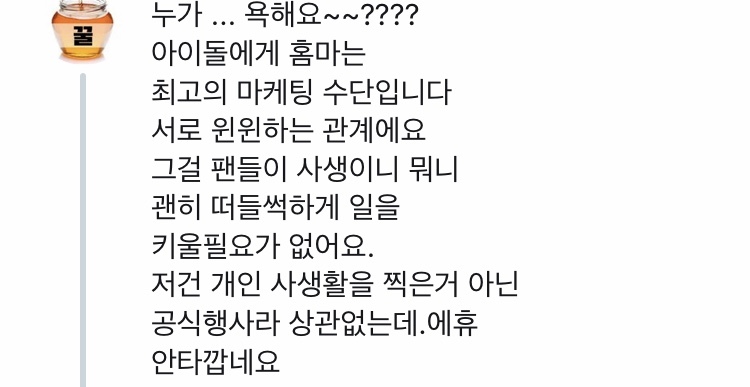 인티에서 가져온 건데 누군진 모르겠으나 한 남돌이 사생+홈마 따돌리는 짤이라고 나옴