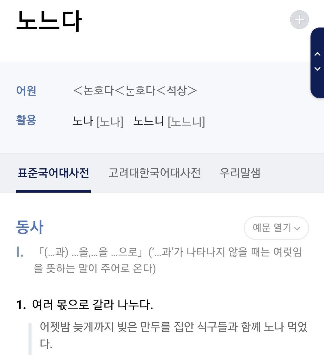 노느다가 방언으로도 등록되어 있고, 국립국어원 답변이 수정된 건 때문에 최근에 표준어로 바뀐 건가 생각할 수 있는데