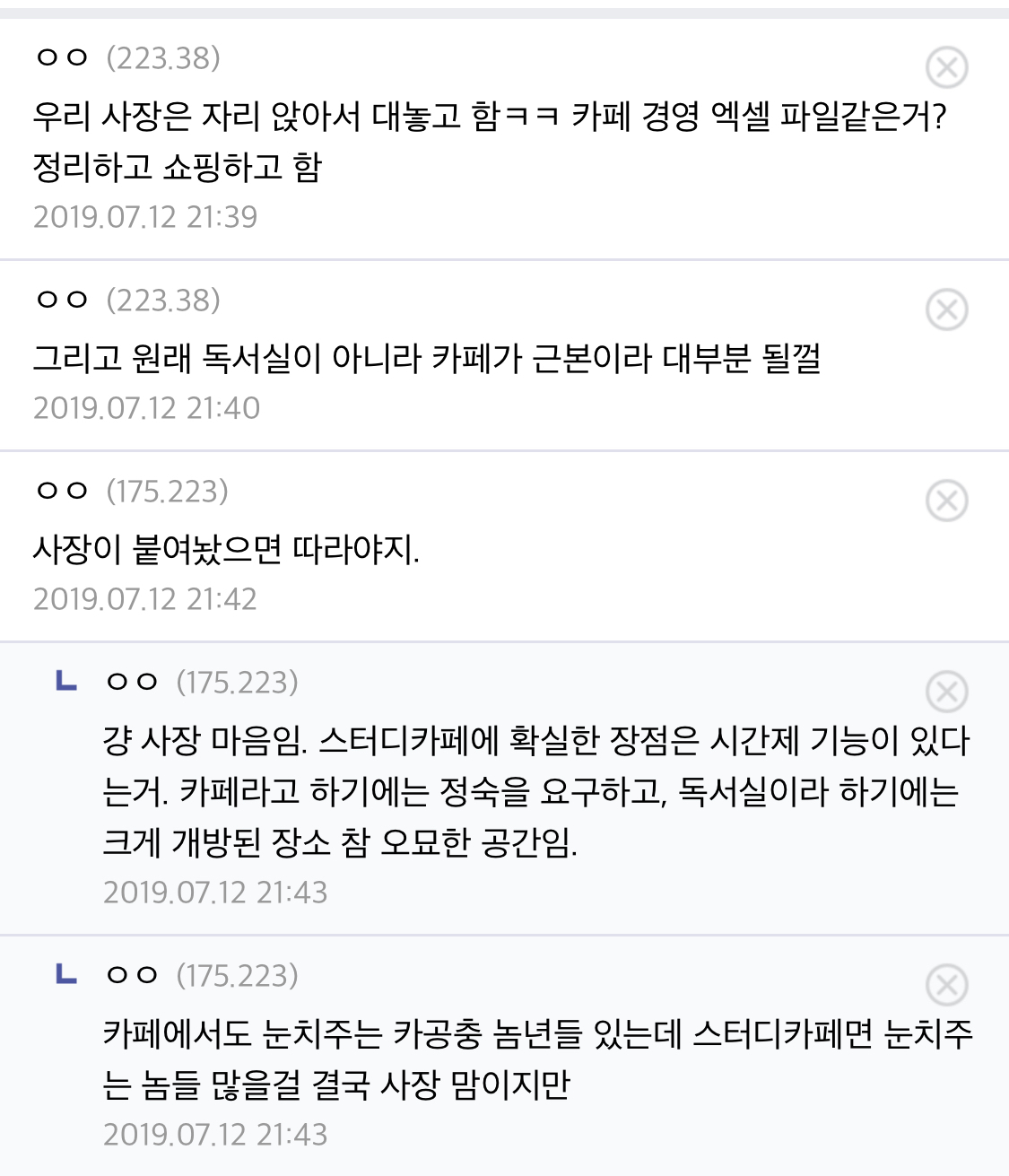 작성자chaba 작성시간 21.04.07 카페마다 다름 근데 노트북 사용도 못하게할거면 스터디카페가 뭔 의미가 있어.. 걍 독서실 가야지