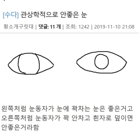 작성자카페라땡 작성시간 21.04.04 너무 많은데ㅠㅠ 저런 눈깔 길에 널렸어ㅠ
