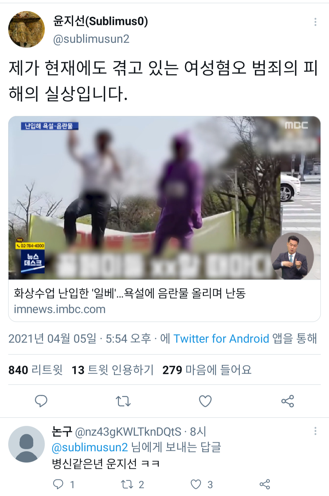 작성자타락천샤 작성시간 21.04.06 . 진짜 쟤네 다 죽이고싶다