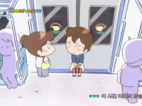 그시각 지하철에서 만난 상지와 아리...ㅂㄷㅂㄷ...