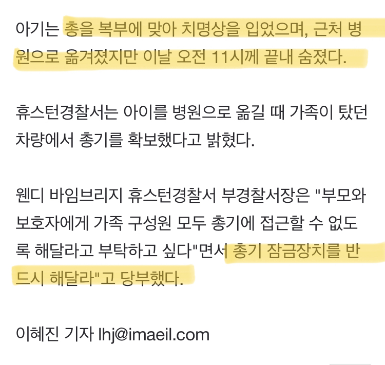 작성자1시간 빠른 나라 작성시간 21.04.10 애 손이 닿는곳에 총기를 두다니..