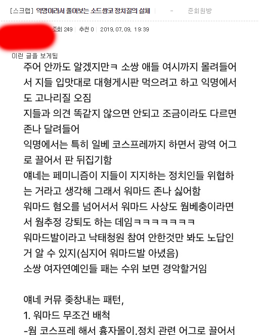 내용만 봐도 쭉빵 여론을 소쌍으로 몰아가려는 글이고