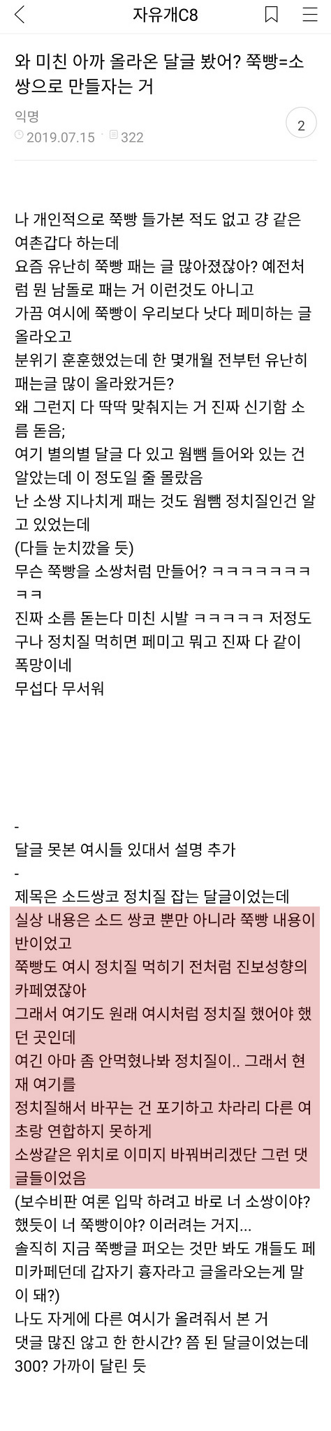 정치질 당하는 여초가 없어야 해서 용기내서 쓴다