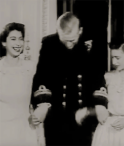 (사실 조지6세는 필립을 처음에 반대했다고 하는데 필립이 왕족출신(그리스 왕자)이긴 하지만 어릴때 그리스 군주제가 전복되면서 필립네 가족은 강제추방 당해 아빠는 가족 버리고 망명하고, 엄마는 정신장애로 병원에 입원, 누나들이 있었는데 독일 나치 집안과 결혼한게 문제에 그마저도 비행기 사고로 사망해 가족없이 불운한 어린시절을 보냈고 다른 영국왕족 친척들의 도움으로(필립은 그리스왕족+영국왕족+덴마크왕족+러시아왕족의 피가 섞여 있음) 지금까지 살아왔던거라 미래의 여왕이 될 딸의 남편감으로 탐탁해하지 않았던 듯)