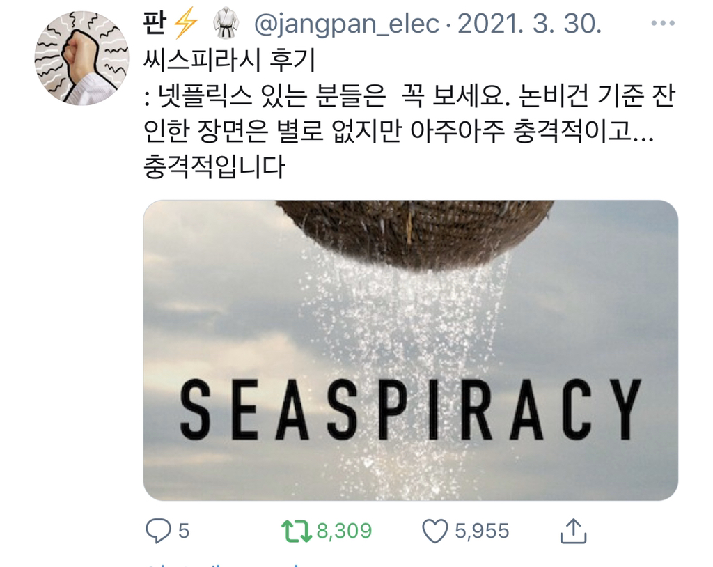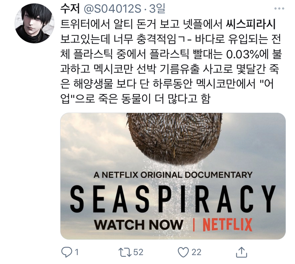 자세한 내용이 궁금한 여시들을 위해 넷플릭스 씨스피라시에 대해 잘 정리해둔 블로그 두고 갑니다.