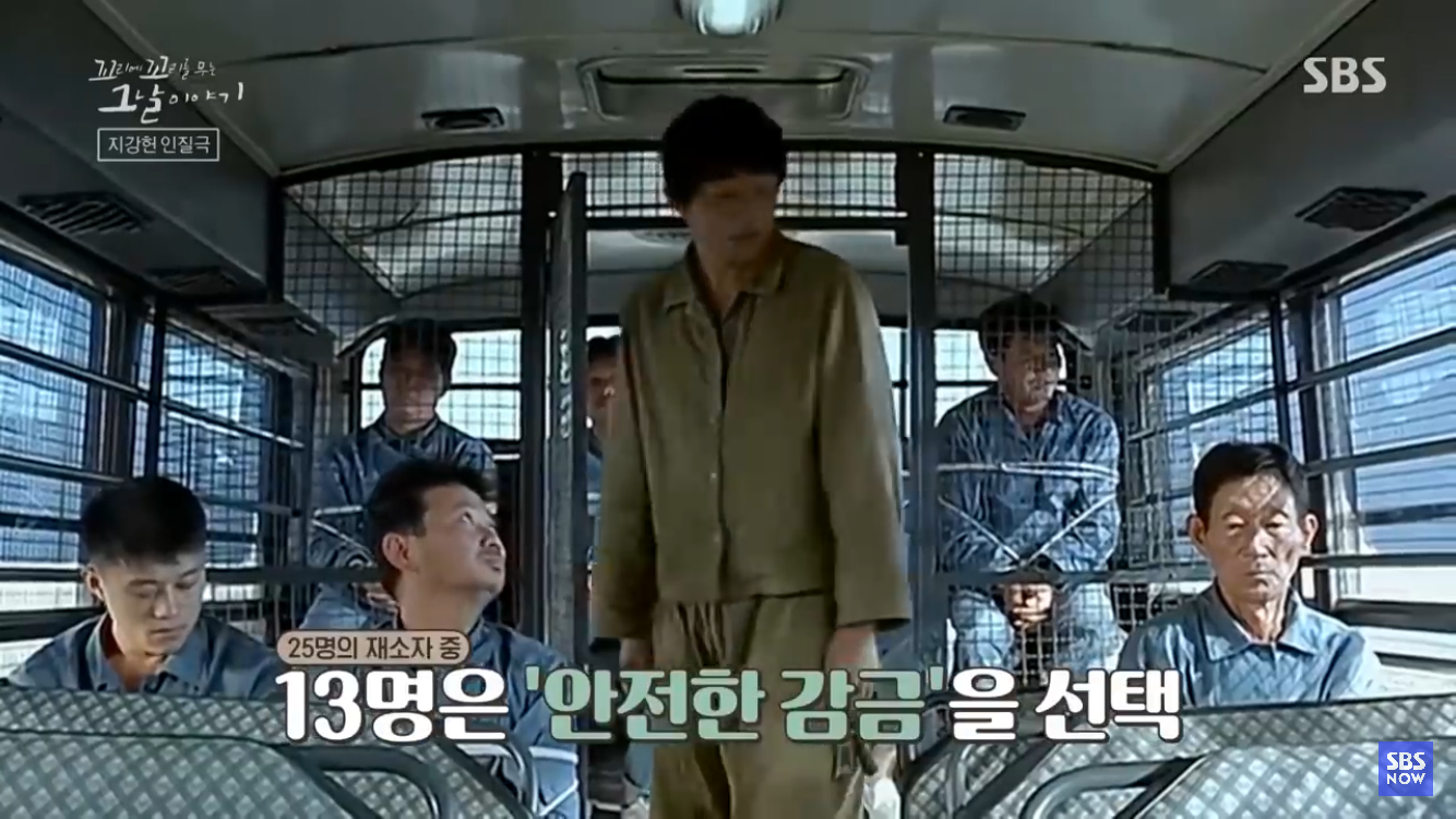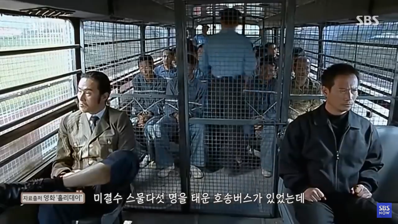 이 네명은 원래 호송버스에 타서 서울에서 대전,공주 교도소로 이감 중이었음.