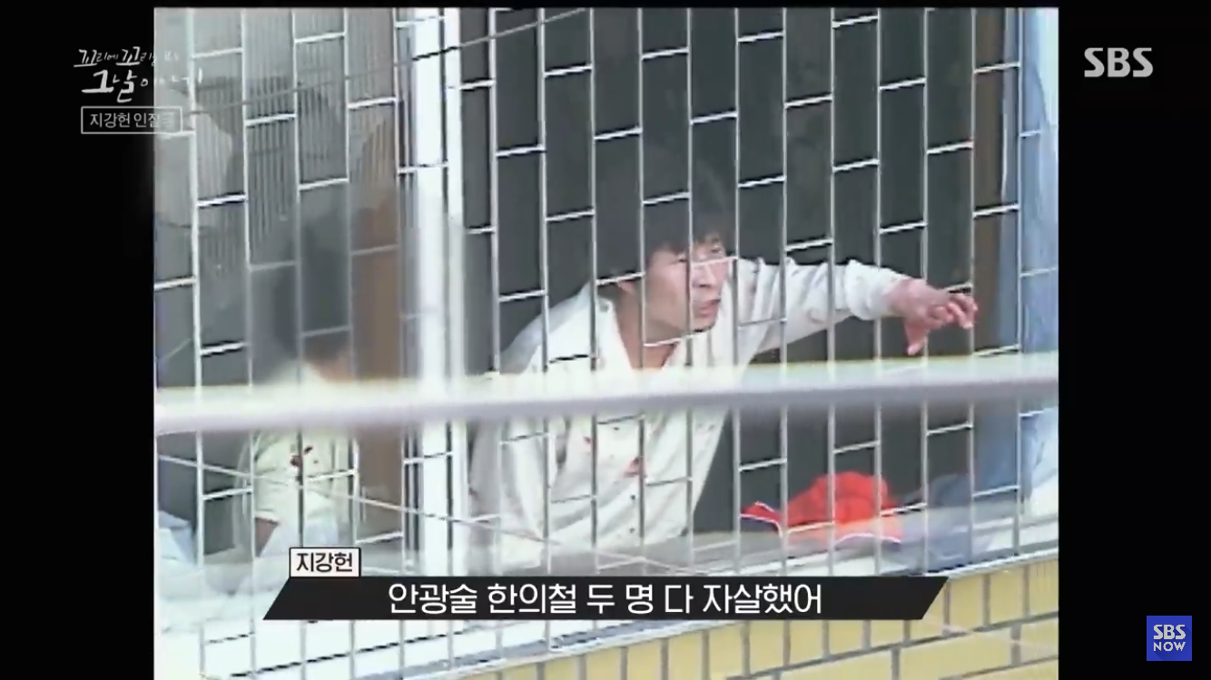 "신발을 또 다 벗더라구요. 그리고 지강헌이 애들 시켜서 걸레로 닦게 하고.."