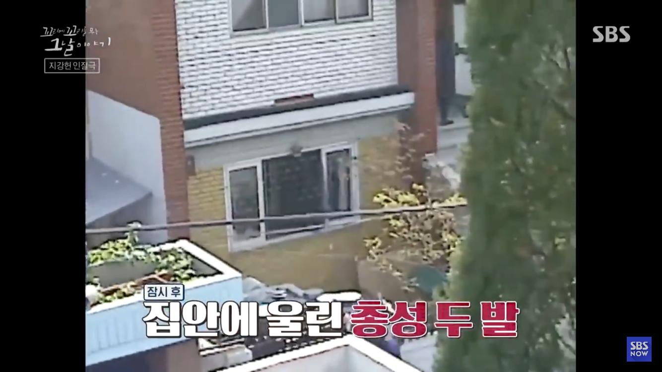 경찰특공대가 집에 들이닥쳐서 지강헌한테 총을 두 발 쏴.