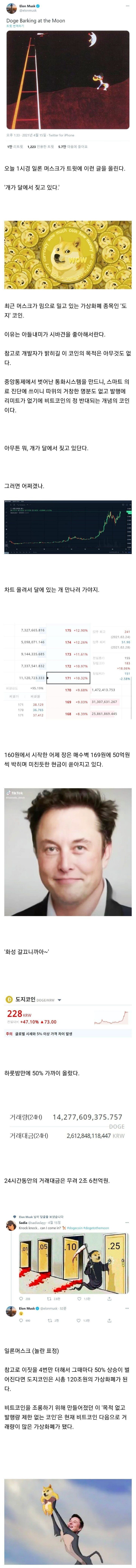 [흥미돋]현재 가상화폐 시장을 단적으로 보여주는 일 .jpg 작성자사랑해도혼나지않는꿈이였다|작성시간21.04.17|조회수17,340 목록 댓글 56 글자크기 작게가 글자크기 크게가 출처 : https://theqoo.net/1940143415현재 가상화폐 시장을 단적으로 보여주는 일 .jpg - 스퀘어 카테고리올라가는데 이유없고 내려가는데 이유없다theqoo.net올라가는데 이유없고내려가는데 이유없다 다음검색 현재 게시글 추가 기능 열기 북마크 공유하기 신고 센터로 신고 댓글 댓글 56 댓글쓰기 답글쓰기 댓글 리스트 작성자로아시작 | 작성시간 21.04.17 저새끼 진짜 존나 짜증남 작성자천국과지옥사이 | 작성시간 21.04.17 일론 존나싫어 작성자겨울동화소라카 | 작성시간 21.04.17 나 시발 이거 83원일ㅋ대 사둿다가ㅜ올라갈 기미 없아서 팔앗가고ㅡㅡ 작성자사랑은 나도 모르는 새에 | 작성시간 21.04.18 뭐랄까 도지코인은 자본주의 사회를 너무 단적으로 잘 보여주는 것 같아서 진짜 싫고 일론 머스크 너무 재수없어 작성자영~차 영~차 | 작성시간 21.04.18 시바새기 댓글 전체보기