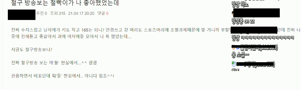 작성자퀸카여시 작성시간 21.04.18 근데 철구 저분 나이 좀 있으신분 아냐? 어른 아닌가...?? 쭉빵은 여촌데 약간 연령대 어린 곳 아냐? 어른스럽지 않아보여ㅠ 저길 저렇게 들어가서 목숨 걸고 염탐한다는게...;;