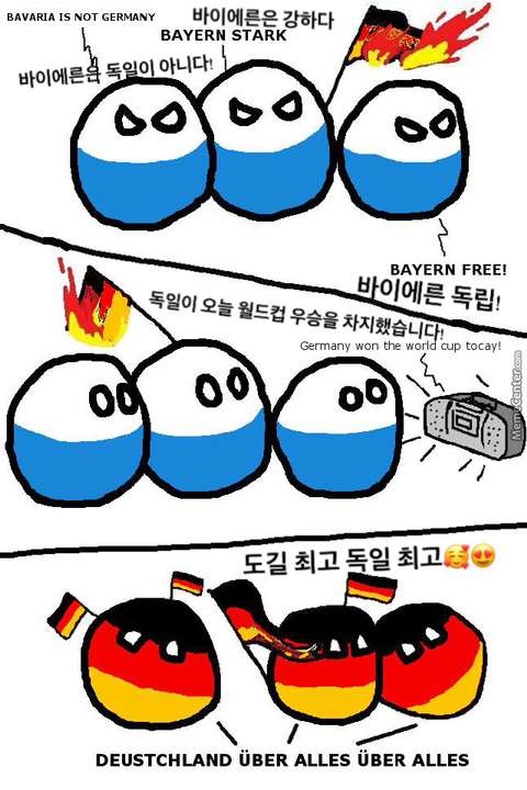 ㄱㅆ) 바이에른은 독일 남부에 있는 주인데 원래부터 부유한 주고 독일의 전통이나 특색이 바이에른지방에서 유래된게 진짜 많음 ex 옥토버페스트 ,라들러 그만큼 지역사람들 자부심도 강한 편이고 독일에서 가장 부유한 뮌헨이 바이에른의 주도입니다!