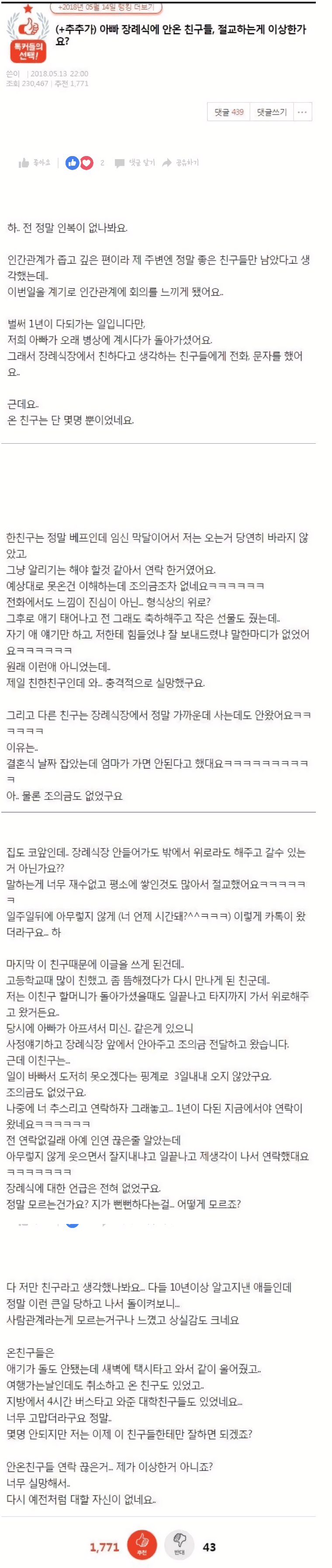 잘 보내드렸냐.. 괜찮냐.. 미안하다.. 밥이라도 먹자.. 이런 연락조차 받지 못했으니까