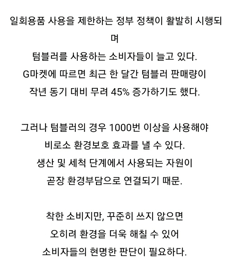 [스크랩] [흥미돋]텀블러, 1000번 쓸 다짐하고 구매하세요 작성자다이어트 쉐이크|작성시간21.04.25|조회수5,390 목록 댓글 33 글자크기 작게가 글자크기 크게가 출처https://m.post.naver.com/viewer/postView.nhn?volumeNo=17590063&memberNo=27875303 다음검색 스크랩 원문 : 쭉빵카페 현재 게시글 추가 기능 열기 북마크 공유하기 신고 센터로 신고 댓글 댓글 33 댓글쓰기 답글쓰기 댓글 리스트 작성자슛돌이야 | 작성시간 21.04.25 스벅 선물받은거 겉에 코팅 벗겨졌는데 쓰는데는 이상없어서 걍 쓰는 중.. 최소 5년 지난거같은데.. 작성자려성시대 | 작성시간 21.04.25 이미 4년째... 작성자공부해야됨 | 작성시간 21.04.25 5년째 쓰는데,,멀쩡해,,, 작성자비혼네요 | 작성시간 21.04.25 그리구 텀블러는 분리수거도 거의 안된다고 보면 된대... 작성자지골로 | 작성시간 21.04.26 9년째...쓰고잇는걸요.. 댓글 전체보기