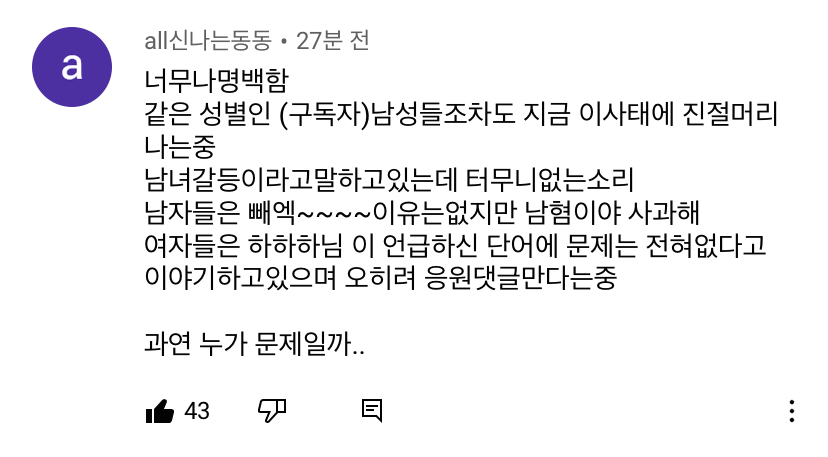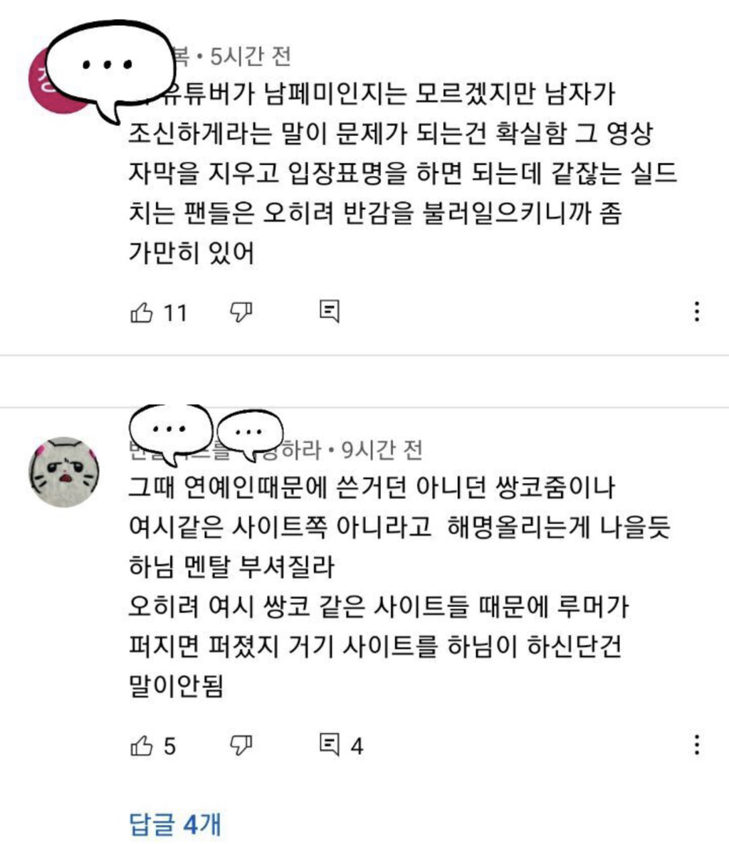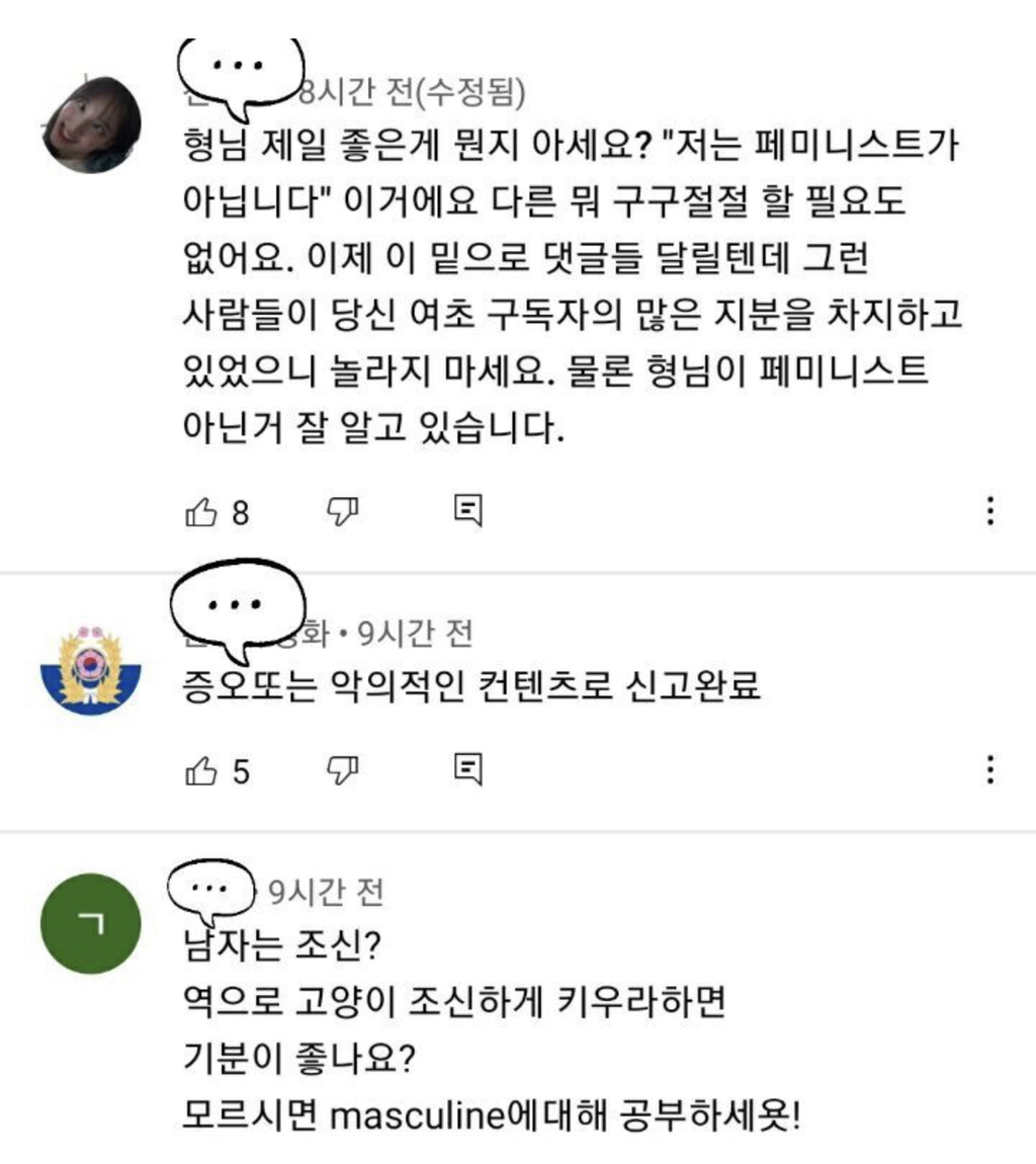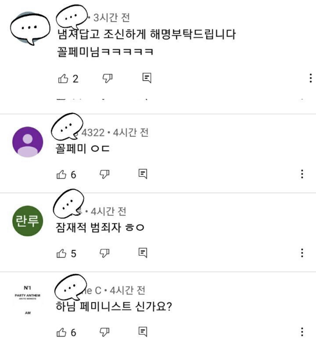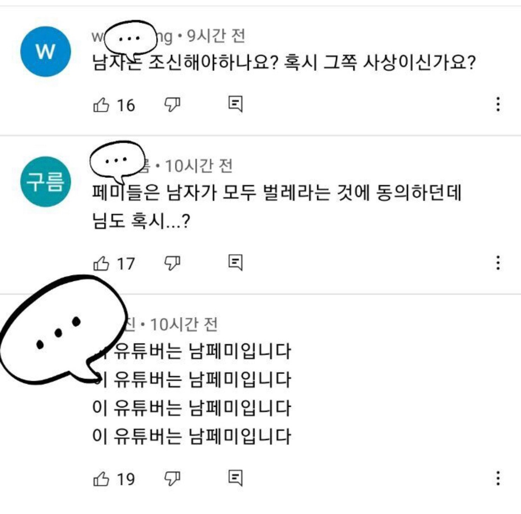 [흥미돋]남적남까지 만드는 한남들 작성자퀸시|작성시간21.04.25|조회수9,233 목록 댓글 47 글자크기 작게가 글자크기 크게가 출처 : 여성시대 퀸시고양이&강아지와 함께유튜브 채널 꾸려나가는 유튜버 “hahaha”에서 수컷 강아지가 밥 먹는거보고>조신<이라는 단어 썼다고 한남들이 발작 일으킴그리고 달린 댓글구독자인 남자들도 이런 상황에 진절머리 나는중 ㅋㅋㅋ남적남까지 실천중인;; 다음검색 현재 게시글 추가 기능 열기 북마크 공유하기 신고 센터로 신고 댓글 댓글 47 댓글쓰기 답글쓰기 댓글 리스트 작성자프으ㅡ | 작성시간 21.04.25 낙인 찍는데 환장한 거 같어 어우 작성자후룹뚜뚜 | 작성시간 21.04.25 즈그들 병신같은거 지들만 모르지.... 작성자TheBoldType | 작성시간 21.04.25 하삼 건들지마 작성자라루룽 | 작성시간 21.04.25 계속 선 넘어라 머저리들아 ㅋㅋㅋㅋㅋㅋㅋㅋㅋㅋㅋㅋㅋㅋㅋ 전국민 페미 만들기 프로젝트~ 작성자민덜레 | 작성시간 21.04.26 왜 저래 진짜 댓글 전체보기