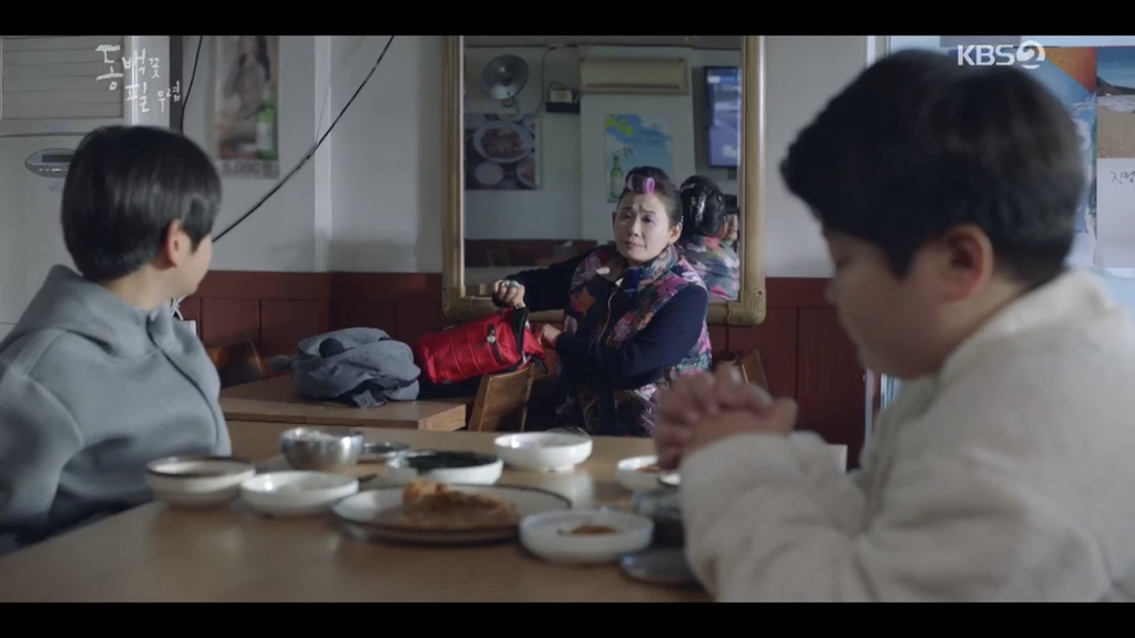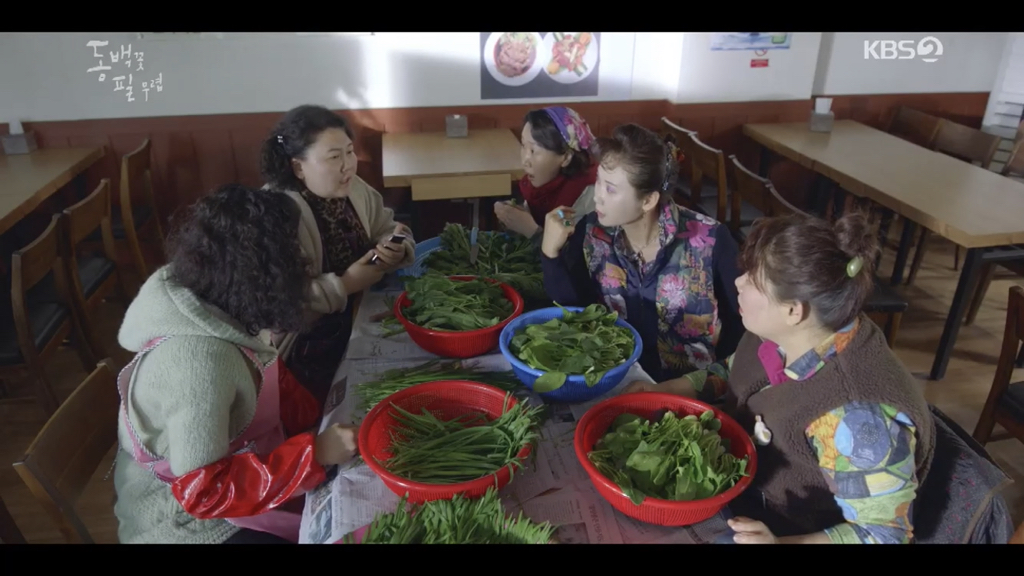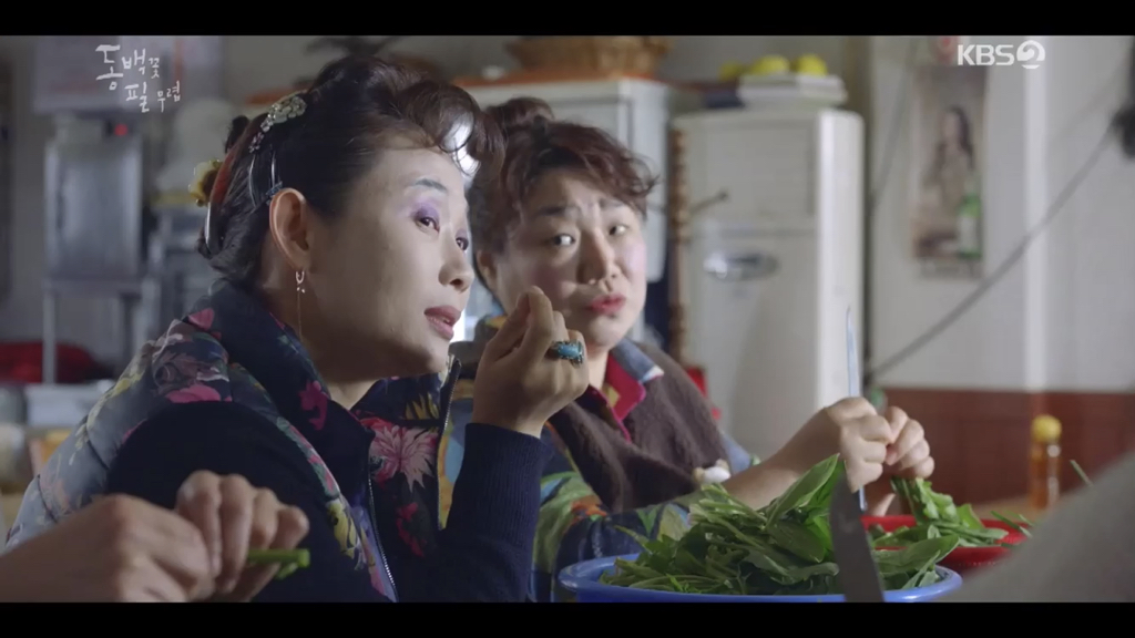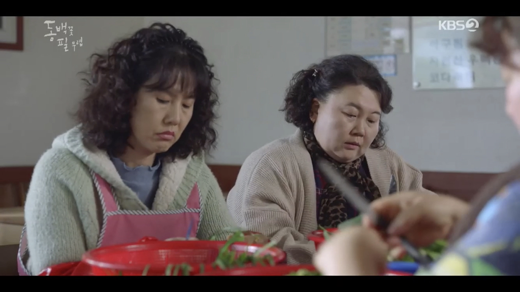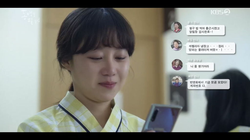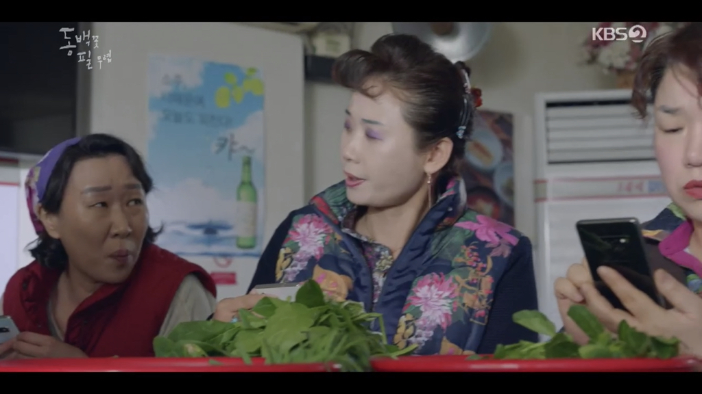 (애련, 귀련 동생, 하루종일 진짜 하루종일 ㅋㅋ 동백이 엄마 상태 옹벤져스에 전달)