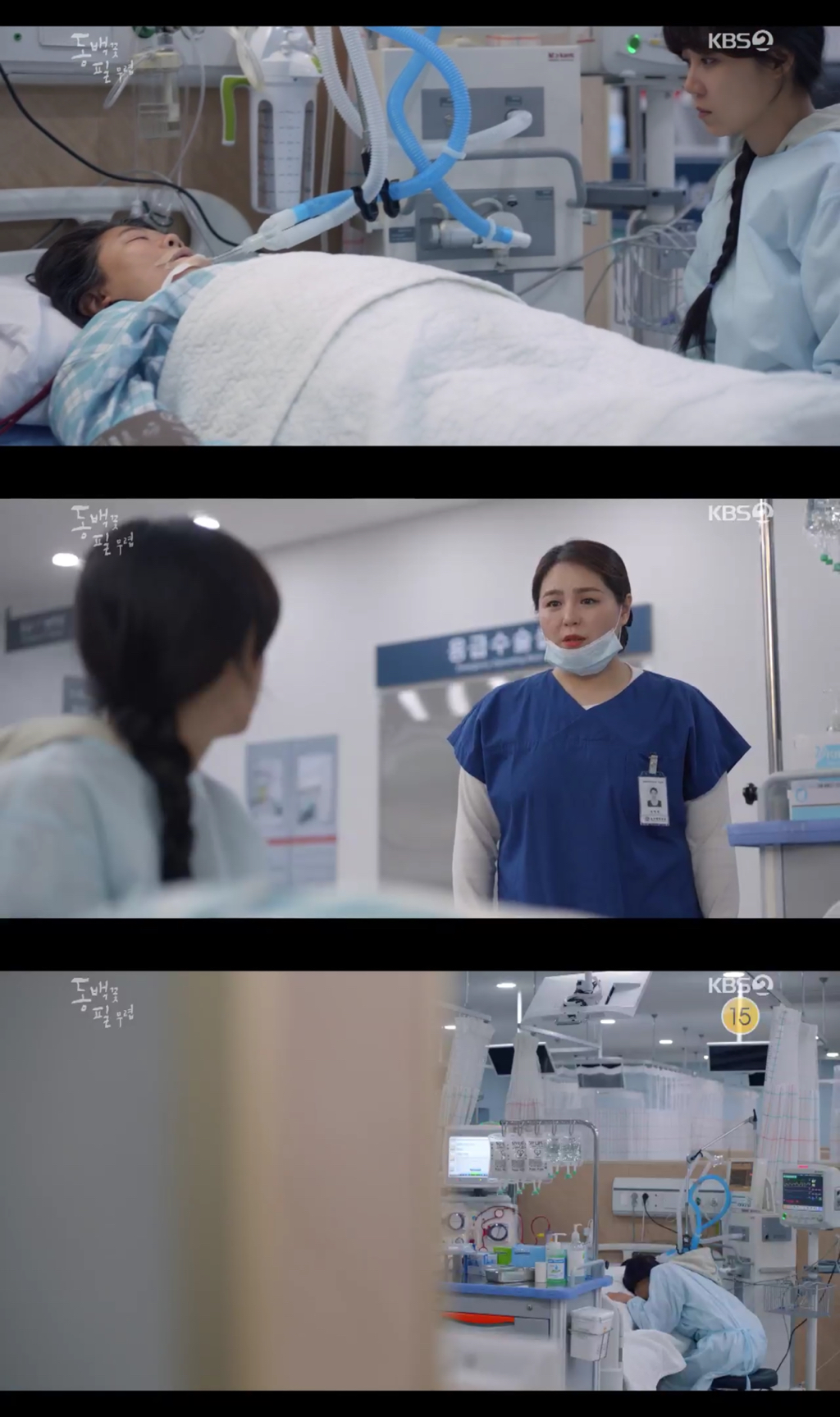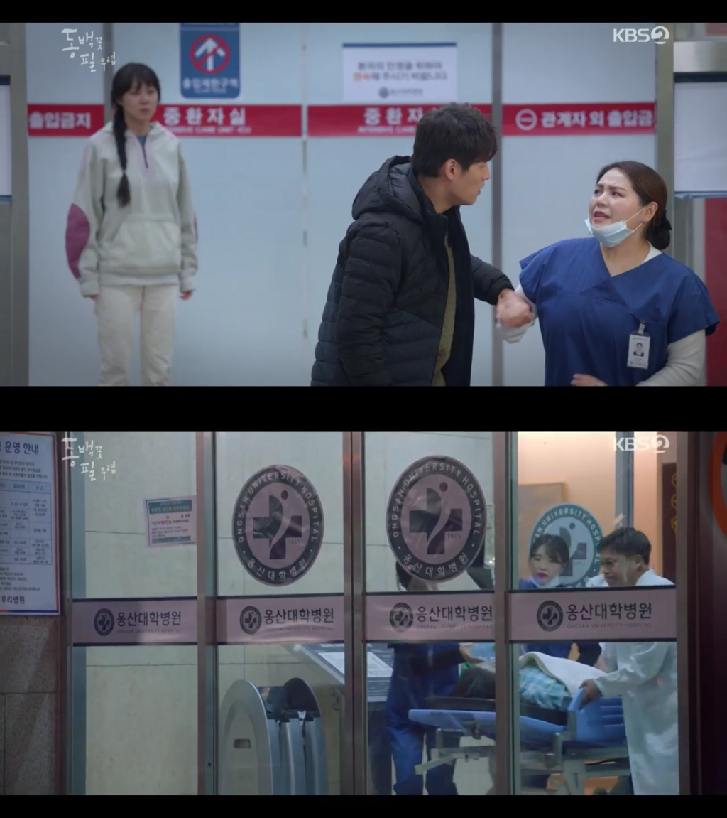 면회 시간이 지나 간호사가 보호자들을 모두 내보낼 때 동백이는 오늘 어머니 옆에 있어주라며, 환자가 보고싶어 할만한 사람 다 오시라고 함
