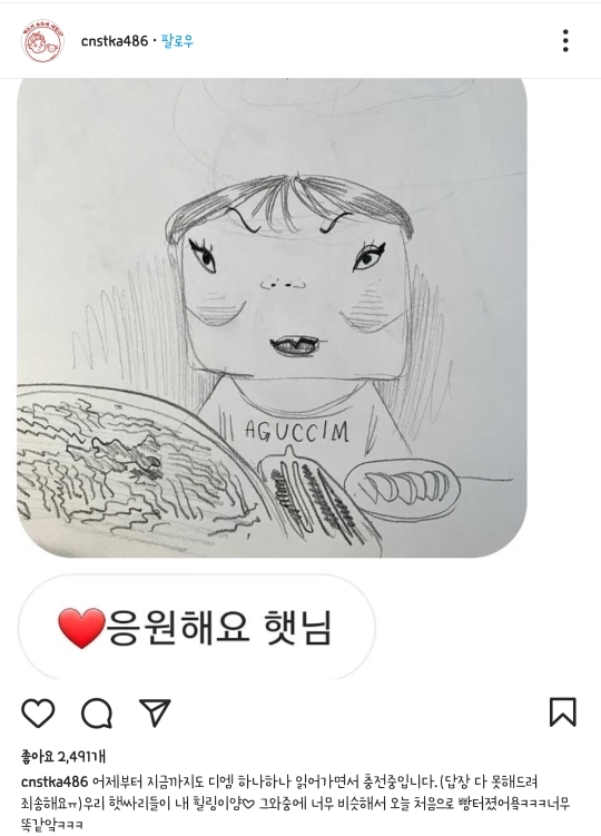 작성자자earth멍 작성시간 21.04.29 저 그림작가 인스타 봤는데 아이돌 팬들이 엄청 싫어하더라 ㅋㅋ ㅜ