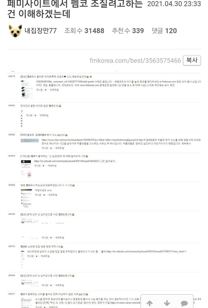 작성자HARIB0 작성시간 21.05.01 다른 남초도 극혐인데 펨코저긴 너무 질이 떨어짐...