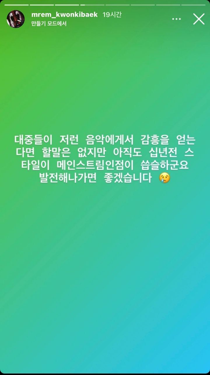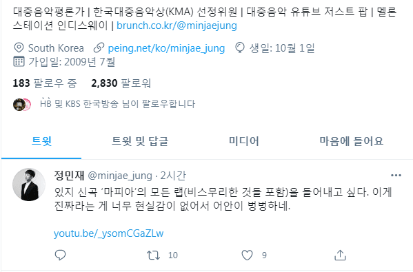 작성자리나사와야마 작성시간 21.05.03 난 멜로디랑 비트는 좋은거같음 그 배우 웅앵하는 랩부분빼고는... 노래자체는 중독성있음 그리고 있지 무대보니까 잘 소화하던데 저 랩만 어떻게좀해봐...ㅠ