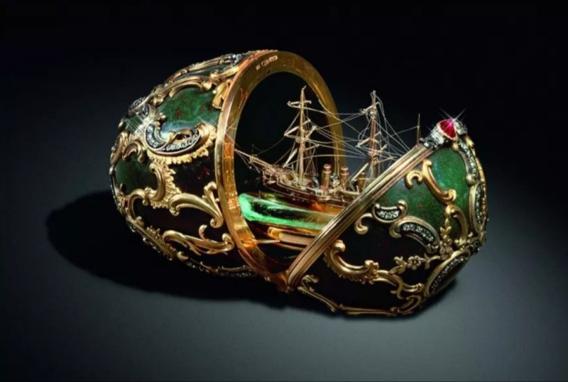 이것도 알렉산드르 3세가 황후를 위해 황금과 다이아몬드로 장식한 진한 녹색 혈석(헬리오토톱) 달걀을 열면 바다를 연상시키는 길이 7cm짜리 투명한 아쿠아마린이 나오는데