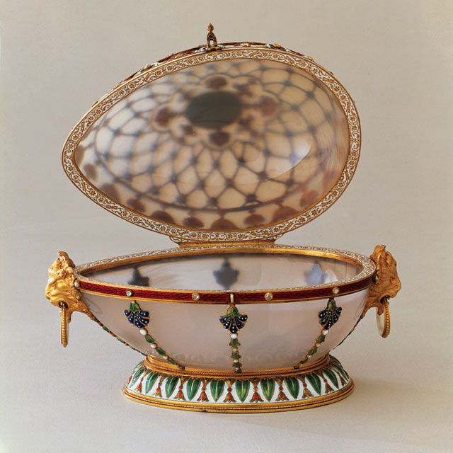 이것도 알렉산드로 3세가 황후에게 선물한거 아게이트 원석을 섬세하게 조각해서 금과 다이아몬드, 루비로 장식