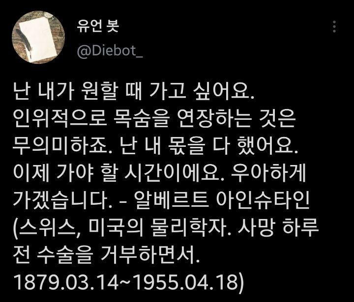 작성자통통한 민들레 작성시간 21.05.08 죽음 직전에는 자기가 죽는다는 걸 알 수 있을까