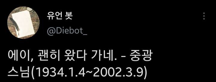 작성자달라달란트 작성시간 21.05.07 ㅋㅋㅋ마지막에 중광스님ㅋㅋㅋㅋㅋ 흥미돋이다...다 흥미돋..난..ㄴㅐ인생사가 적힌 책있으면 안보고는 싶은데..호기심에 결국보고 좌절할듯..
