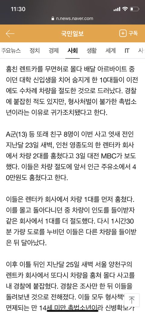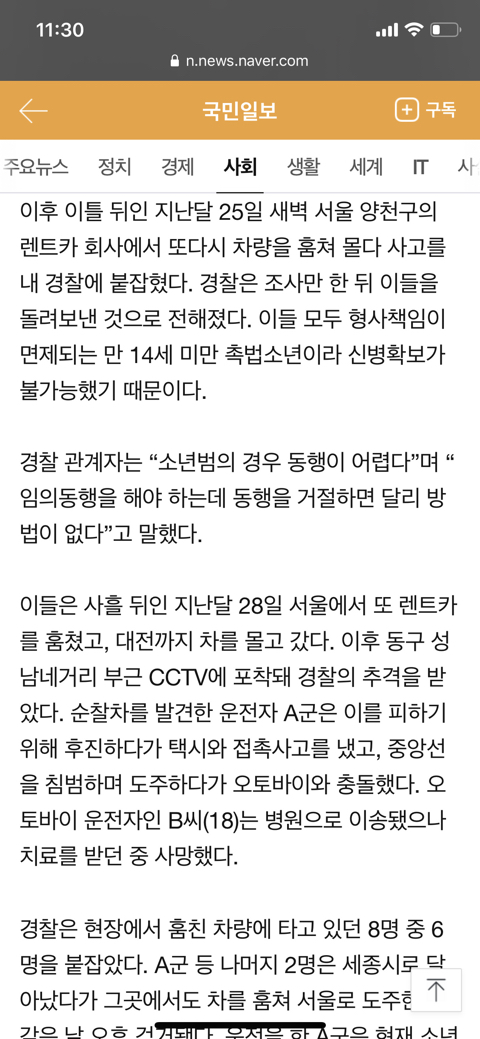 차훔쳐 무면허에 운전하다 사람치여죽여도 나이 어려서 살인자 안되고 풀려남?? 법이 이리 좆같다니....