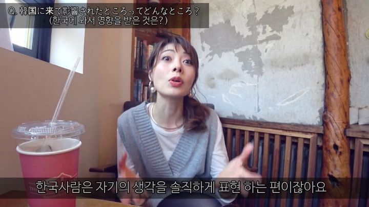 한국에 와서 한국어에 익숙해지면서 '자기 생각'을 말하는게 자연스러워 졌다고 함.