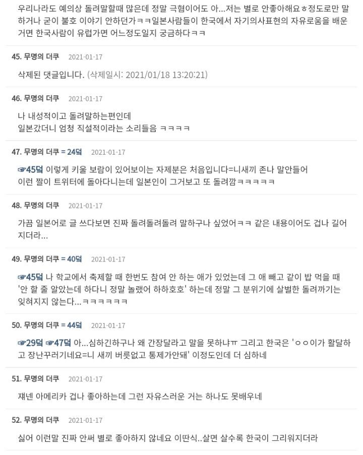 여기 캡쳐 말고도 내 주변에 있는 한국거주 일본인들도 공통적으로 비슷한 이야기를 많이 함.