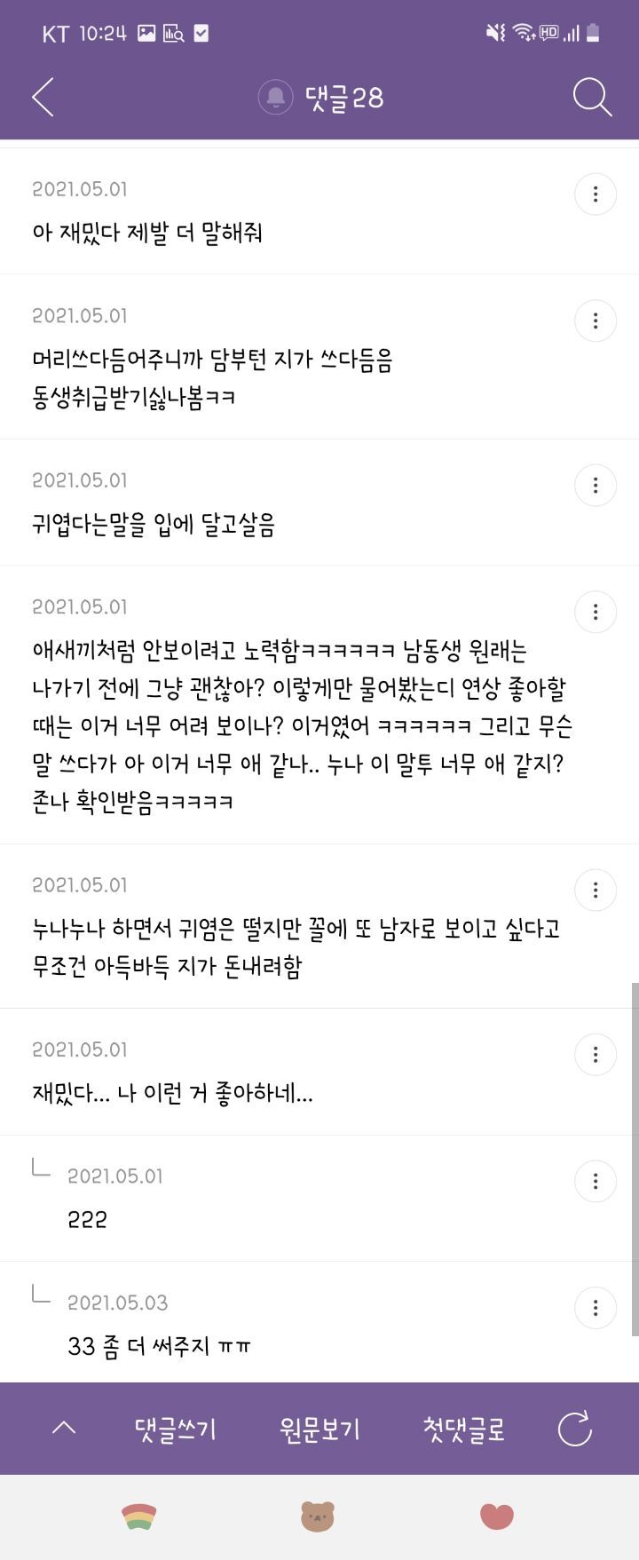작성자남은 삶의 첫날 작성시간 21.05.16 진짜 엄청 오빠인척함