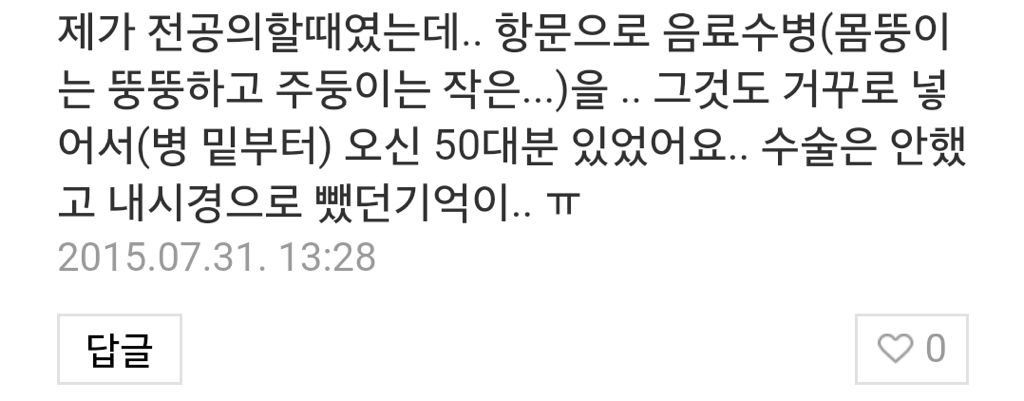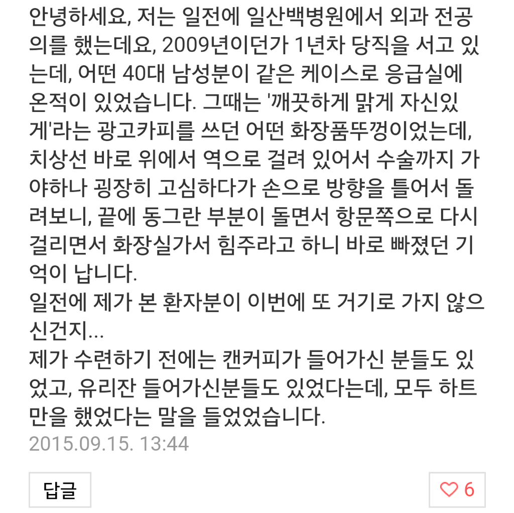 "항문에 이물질이 들어갔습니다."