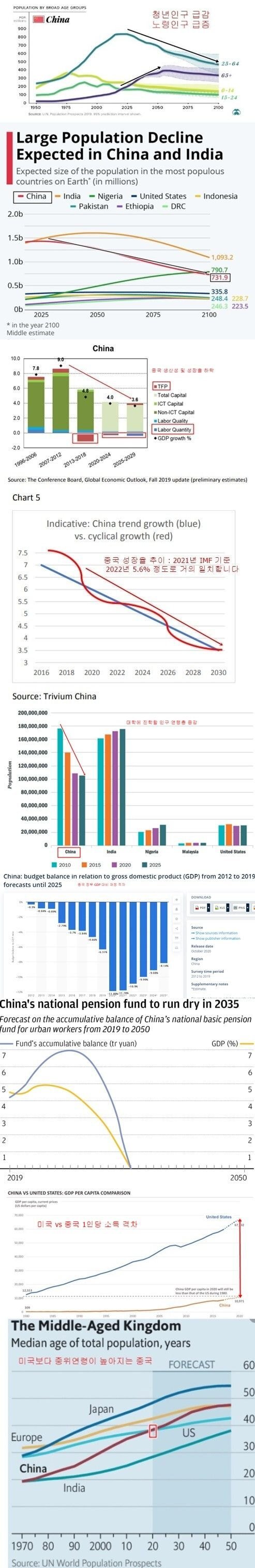 여기에 중국이 지금 국력면에서 확실하게 앞서는 지표가 여러 근원기술, 군사, 금융에서 밀리고 중국에서 국가적으로 지원하는 화웨이의 시장 점유율이 미국에게 견제 받은걸로 1년만에 40% 폭락될만큼 세계 산업 지배력도 압도적으로 밀리는 상황에서 인구말곤 없는데, 이 인구 자체가 감소 그것도 매년 수백만에서 천만이 감소한다는것은 중국에게 크나큰 타격으로 갈 수밖에 없습니다. 그리고 이는 경제성장에도 큰 영향을 끼치죠.