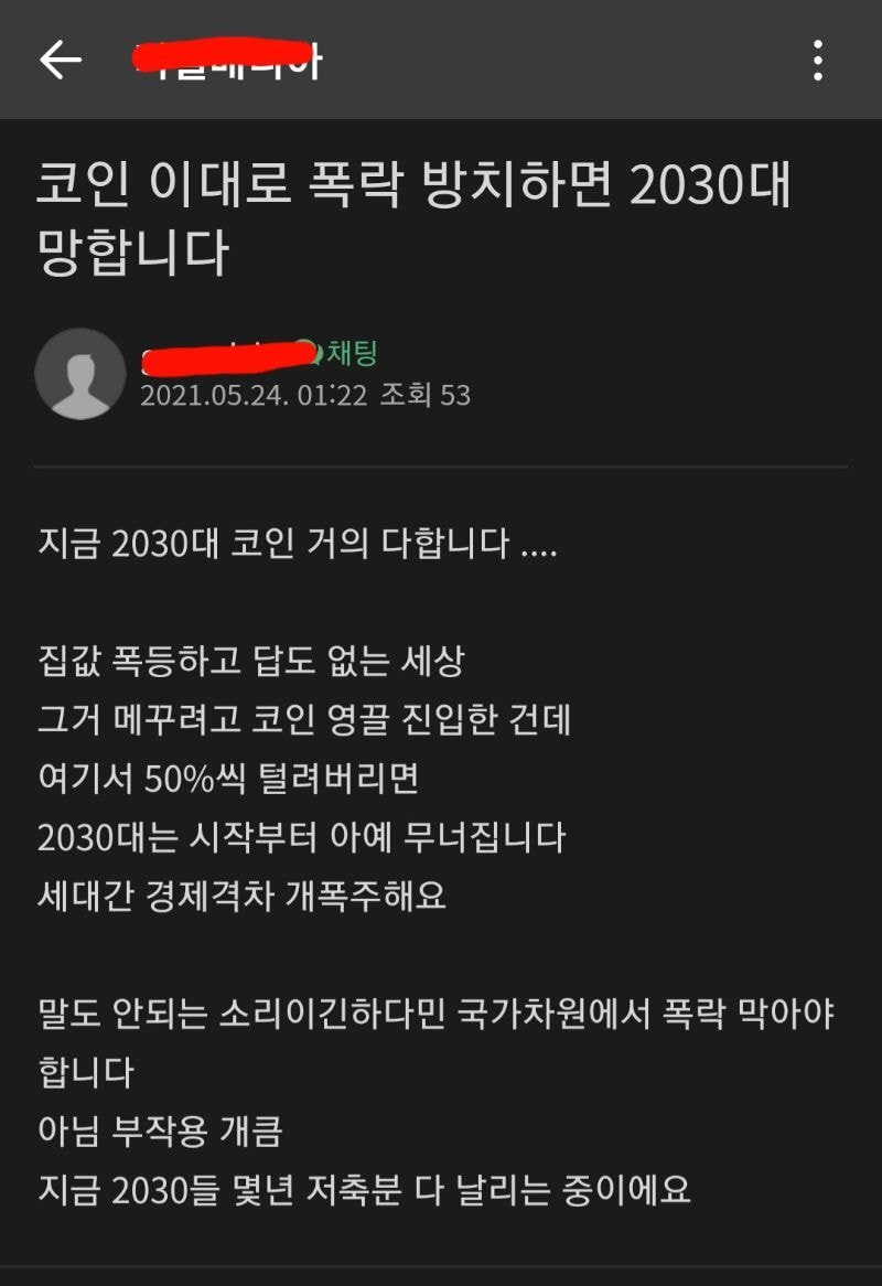 작성자뿔바셋 작성시간 21.05.28 그러니까 적당히 하면 될 일 누가 손해 50% 일지 100% 일 지 모르는 곳에 영혼까지 끌어다 투자를 함 그건 투자가 아니라 도박이잖어..