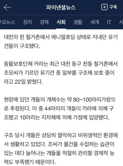 대전 동구 철거촌에서 동물단체가 일부 구조하고
