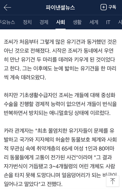 작성자아파트건설업자 작성시간 21.05.26 애니멀호딩이 맞는걸까..... 애기들 보니까 사랑이 그득그득 한데 ㅠㅠㅠㅠ 분명 중성화 못해서 새끼들이 무분별하게 생기거나 죽은건 잘못된건 맞지만... 할머니도 유기견을 못지나쳐서 그런거니 ㅠㅠ