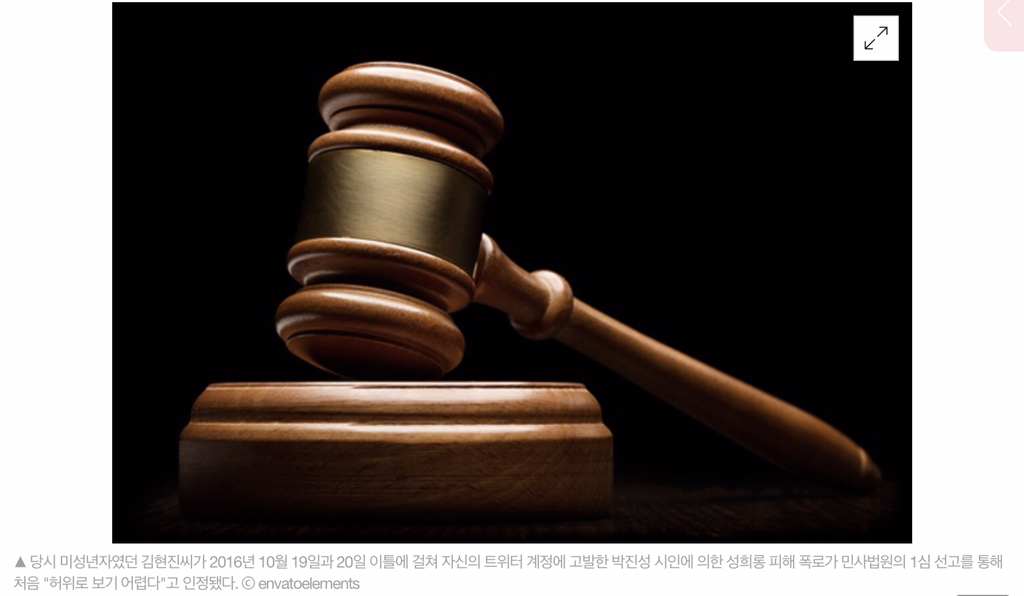 당시 미성년자였던 김현진씨가 2016년 10월 19일과 20일 이틀에 걸쳐 자신의 트위터 계정에 고발한 박진성 시인에 의한 성희롱 피해 폭로가 민사법원의 1심 선고를 통해 처음 "허위로 보기 어렵다"고 인정됐다. 원고인 박씨가 허위사실에 의한 명예훼손 피해를 호소하며 김씨를 상대로 낸 3천만 원의 손해배상 청구는 기각됐다. 지난 21일 청주지방법원 영동지원 노승욱 판사의 판결이다.
