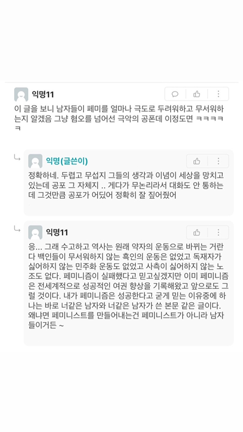 [스크랩] [기타]페미니스트를 만들어내는건 페미니스트가 아니라 남자들이거든 작성자요들총각|작성시간21.05.26|조회수3,905 목록 댓글 29 글자크기 작게가 글자크기 크게가 출처 : 여성시대 요들총각 다음검색 스크랩 원문 : *여성시대* 차분한 20대들의 알흠다운 공간 현재 게시글 추가 기능 열기 북마크 공유하기 신고 센터로 신고 댓글 댓글 29 댓글쓰기 답글쓰기 댓글 리스트 작성자체크바지 | 작성시간 21.05.26 페미제조기 = 한남들 똥대갈 작성자해달좋아 | 작성시간 21.05.26 와..말 잘한다... 작성자복ㄷH지 | 작성시간 21.05.26 말잘한다ㅠㅠ 작성자ACAI BOWL | 작성시간 21.05.27 와 말 진짜 잘한다 크으 작성자•~•€ | 작성시간 21.05.27 ㅇㅇㅇ 한남 때문에 메갈됐는데요? 댓글 전체보기