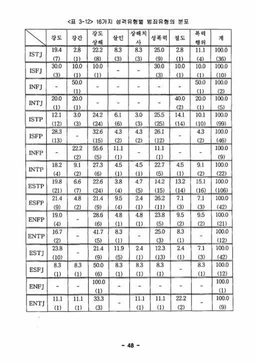 성폭력: ISTP (25) - ESTP (15) - ESTJ (13)