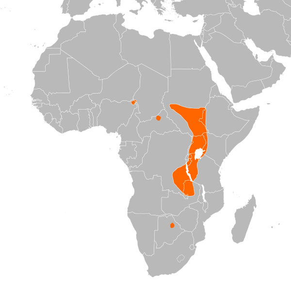 수단, 우간다, 부룬디, 탄자니아, 말라위, 잠비아, 콩고, 중앙아프리카, 르완다, 에티오피아 등에 분포한다.