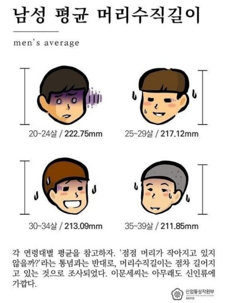 실제로 광복 이후로 한국인 머리 크기는 점점 커지고 있다고 함.