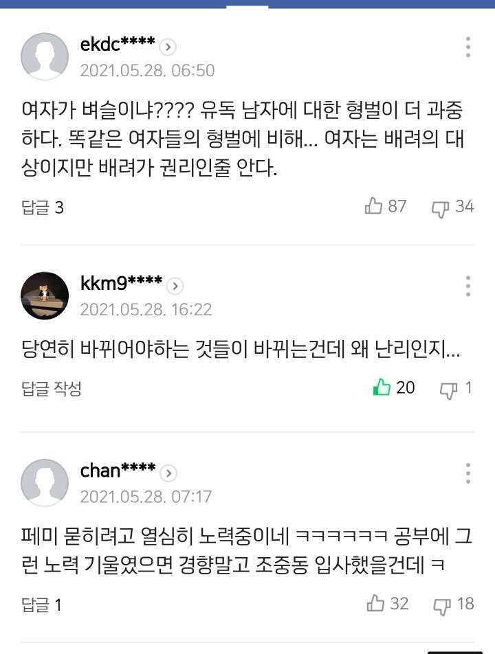 작성자마이구미맛있구미 작성시간 21.06.02 원글 여시 말 정말 공감해...여론의 필요성을 여성들이 모를리가 없지