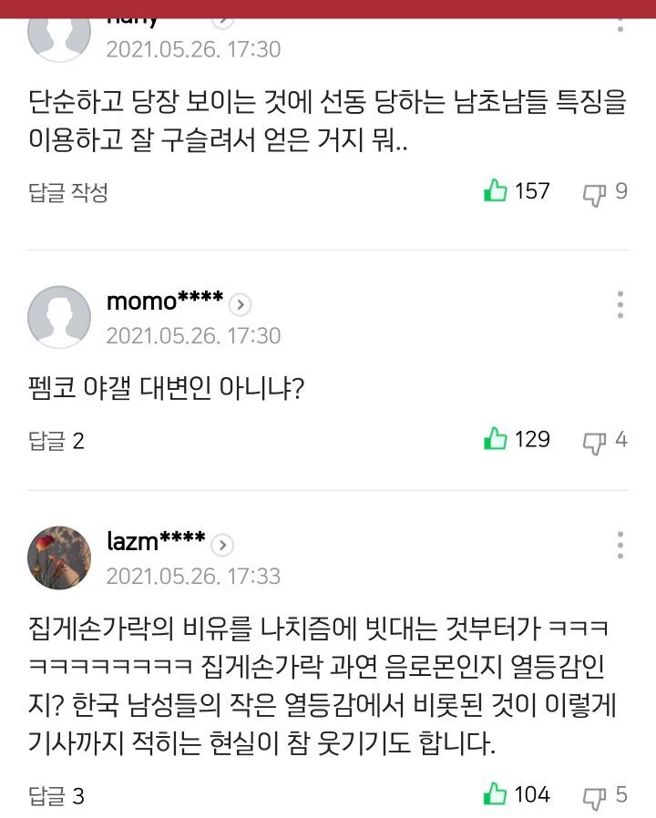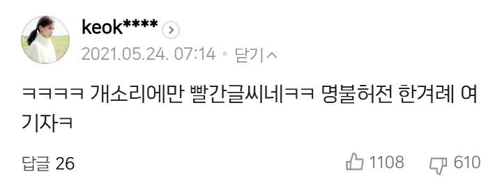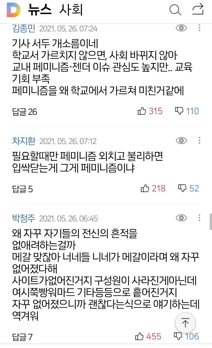 근데 기껏 써놓으면 기사댓글은 한남밭에 악플로 도배.... 쓰던 기자분들도 그래서야 힘이 날까?