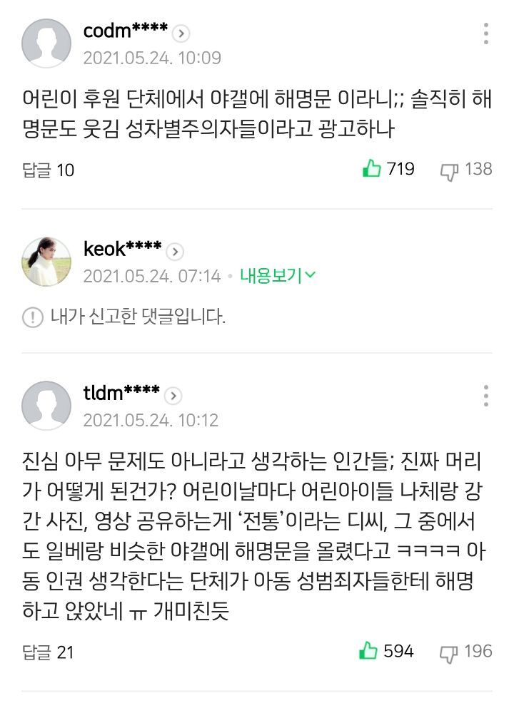 그럼 신고한 댓글을 보여드림(눈갱주의)