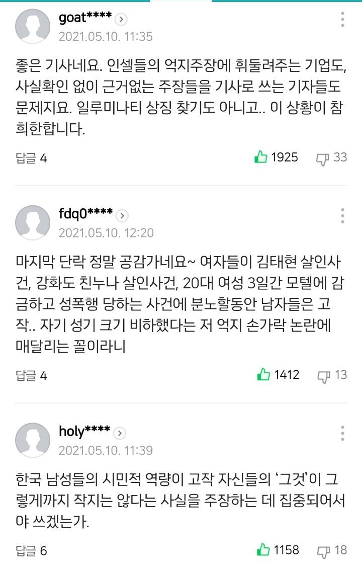 물론 한남민국에서 남자들의 의견이 과잉대표되는 거 있어 그건 인정함