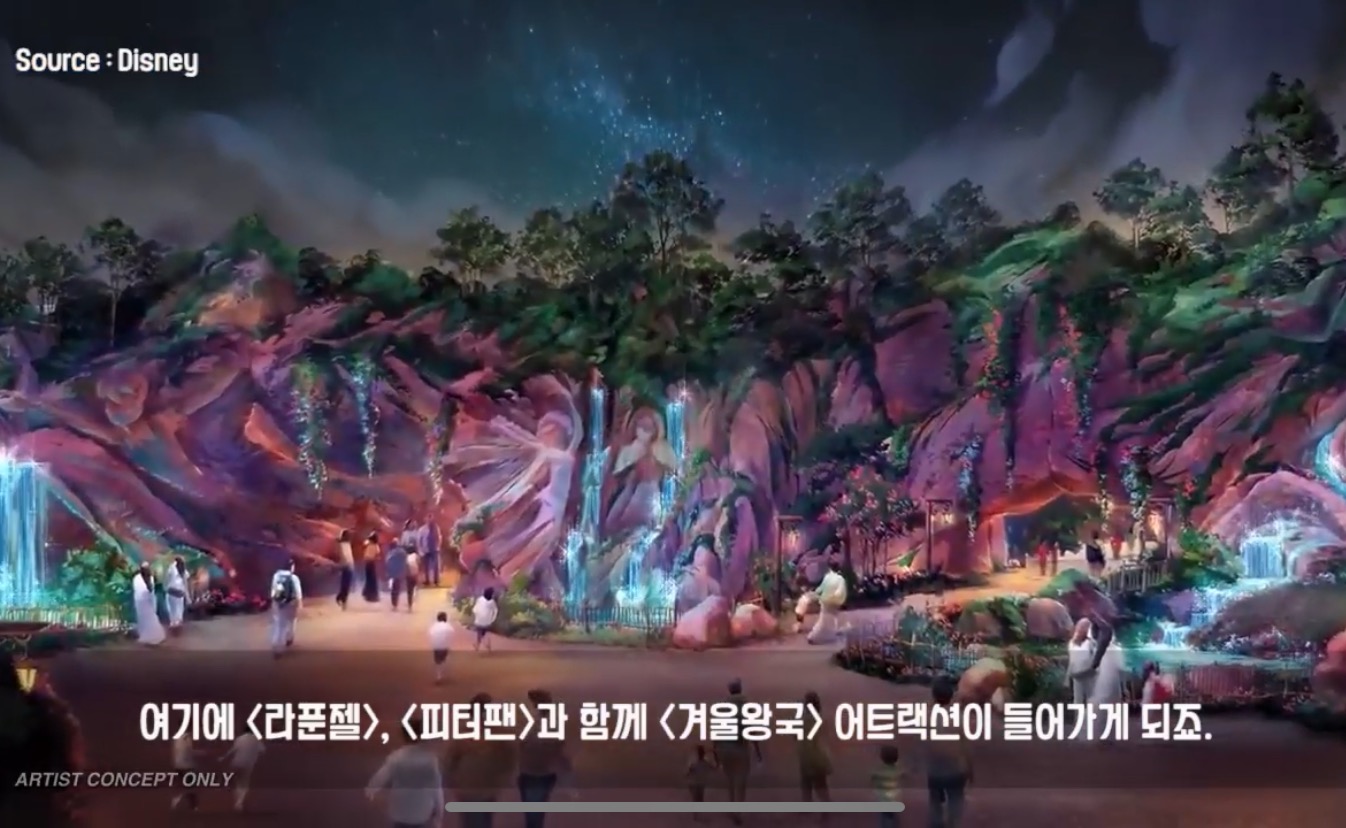 겨울왕국 테마존에 라푼젤 ,피터팬,겨울왕국 놀이기구가 생길 것 같음.