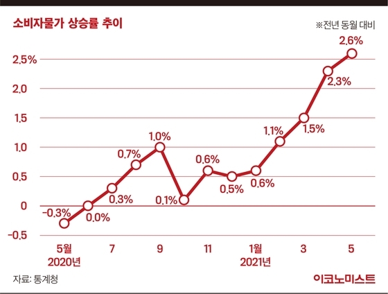 이상기후는 애그플레이션(agflation)으로 둔갑, 소비자물가마저 흔들고 있다. 애그플레이션은 농업(agriculture)과 물가 상승, 즉 인플레이션(inflation)의 합성어다. 9년여 만에 최대치를 기록한 지난 5월의 소비자물가 상승률 2.6% 뒤에는 농산물이 있었다. 통계청은 2일 ‘5월 소비자 물가 동향’에서 “농산물 가격이 전년 동월 대비 13.1% 상승하며 전체 물가 상승률을 1.04%포인트나 끌어올렸다”고 전했다.